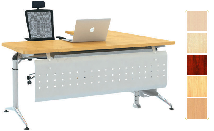※ 上圖為職員桌正面圖,采用現代簡約的風格,以斑馬木和噴塑不銹鋼結合,豐富走線完美結合的集成功能設計展現,給人一種不受約束的感覺,豐富的多顏色選擇,也是此款桌子的優質特色。