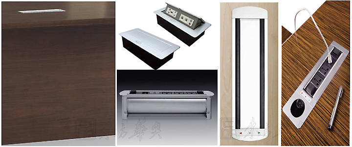 ※ 上圖為系統配套會議桌,強大的過線底盒,過線面蓋可選配款式,可根據使用單位需求情況進行更換和定做!