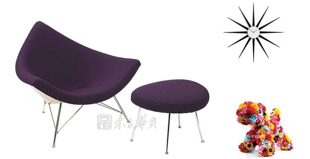 ※  鋼管腳架焊接上鋼板殼體,殼體裝上內裝襯墊的椅面,形如裂開的椰子,F今 Coconut Chair 無論在材質或細節上,完全依照 Nelson 的設計,Coconut Chair 特殊的造型不僅舒適,而且是一件搶眼、能夠隨心所欲自由移動的躺椅。
