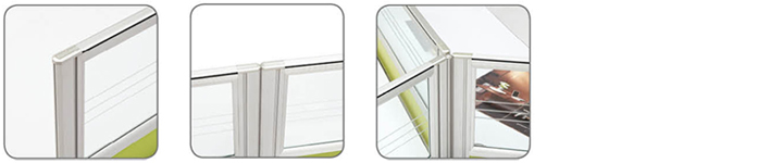 特 點:優質鋁合金型材框架,組件簡化,結構穩定,并可重復拆組使用;面板可任意拆卸組合,可隨意組合布色,具多種造型簡捷有力,可營造辦公環境整齊劃一。